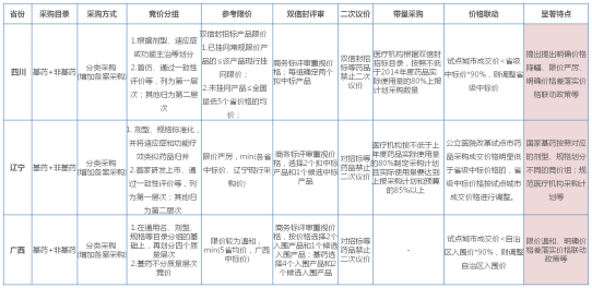 新政要求各地試點城市自行采購且當(dāng)試點城市成交價格明顯低于省級中標(biāo)價格的,省級中標(biāo)價格應(yīng)按試點城市成交價格進行調(diào)整。 四川、遼寧、廣西等省按照政策,試點城市自行采購,且執(zhí)行省級中標(biāo)價與試點城市中標(biāo)價聯(lián)動政策。另外,廣西、四川等省規(guī)定試點城市成交價<省級中標(biāo)價*90%,則調(diào)整省級中標(biāo)價,明確價格差落實價格聯(lián)動政策,未來或?qū)⒂懈嗟氖》菪Х麓伺e。